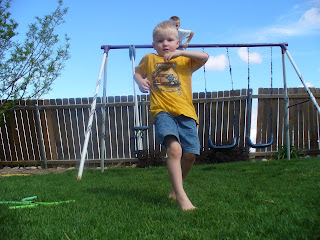 Mark showed Oren how to jump out of the swing the other day, and he has been perfecting the art. One day, he'll stick the landing!